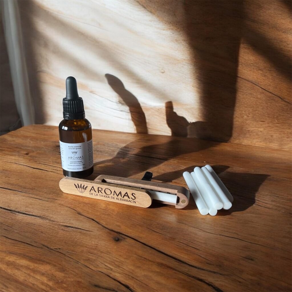 Ambientador de coche de madera con aceite esencial de lavandín